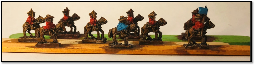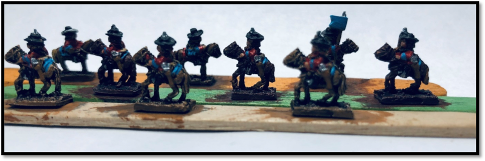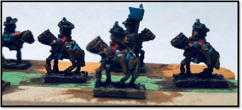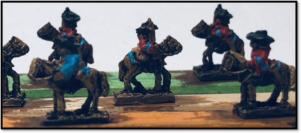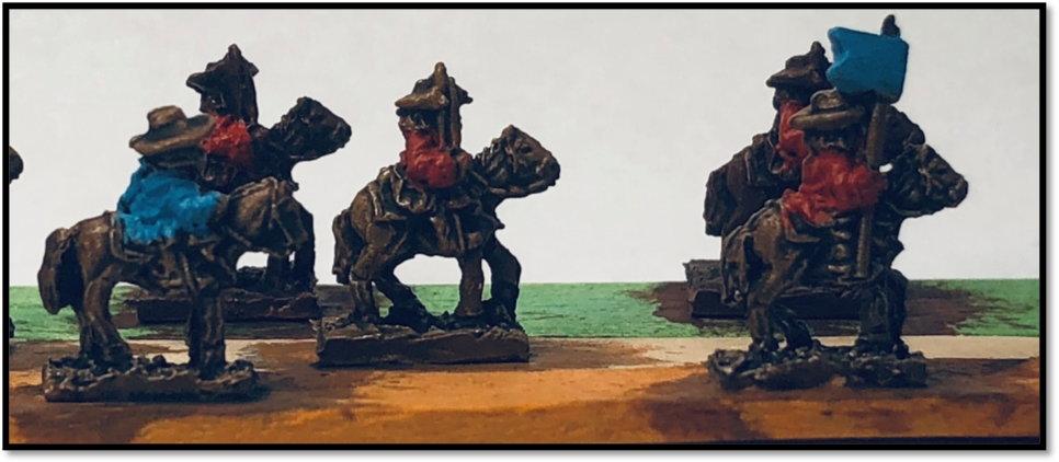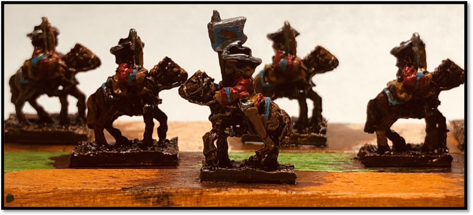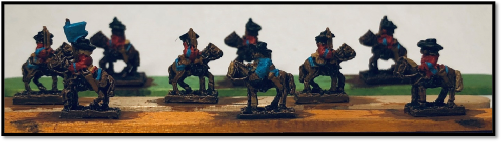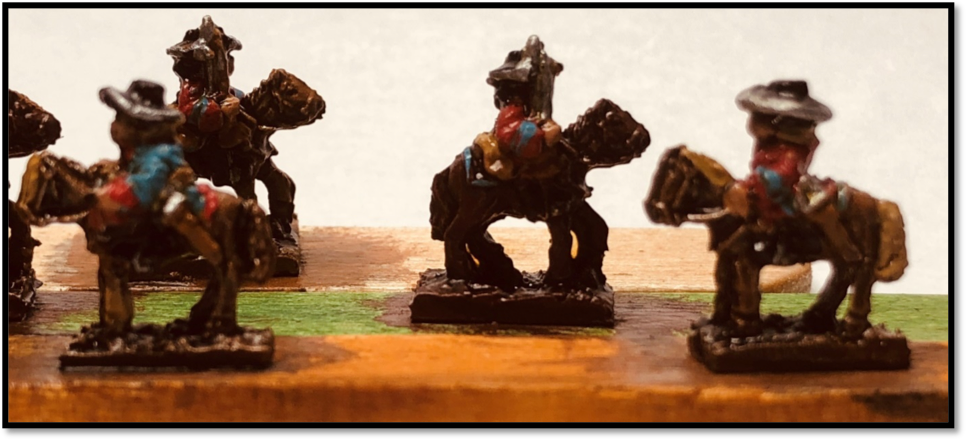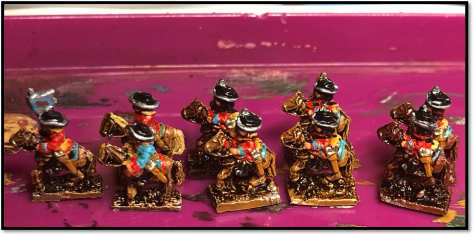 I have been adding silver to detail the steel on the figures on the dragoon muskets, sword handles and banner pole tips both top and bottom. As well as adding a nice silver trim to officers’ hat.