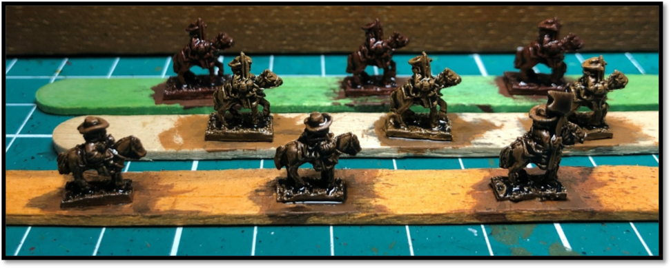 Putting on some belts, banner pole and musket stocks prior to some adding some silver to show up the metal on the figures.